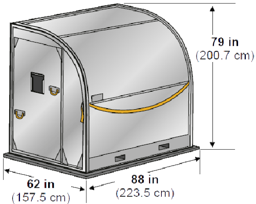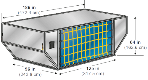 Full-width lower hold container angled at both ends. Refrigerated version of AAU has solid door.