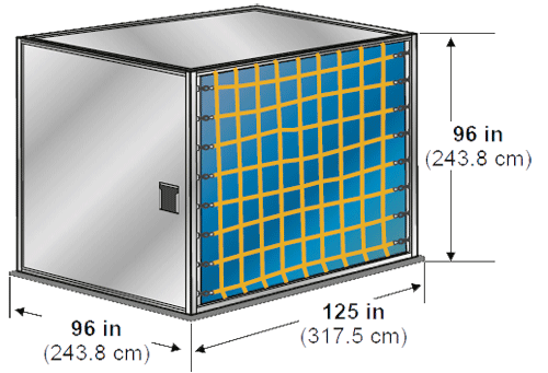 Full-width lower hold container angled at both ends. Door is canvas with built-in net door straps.